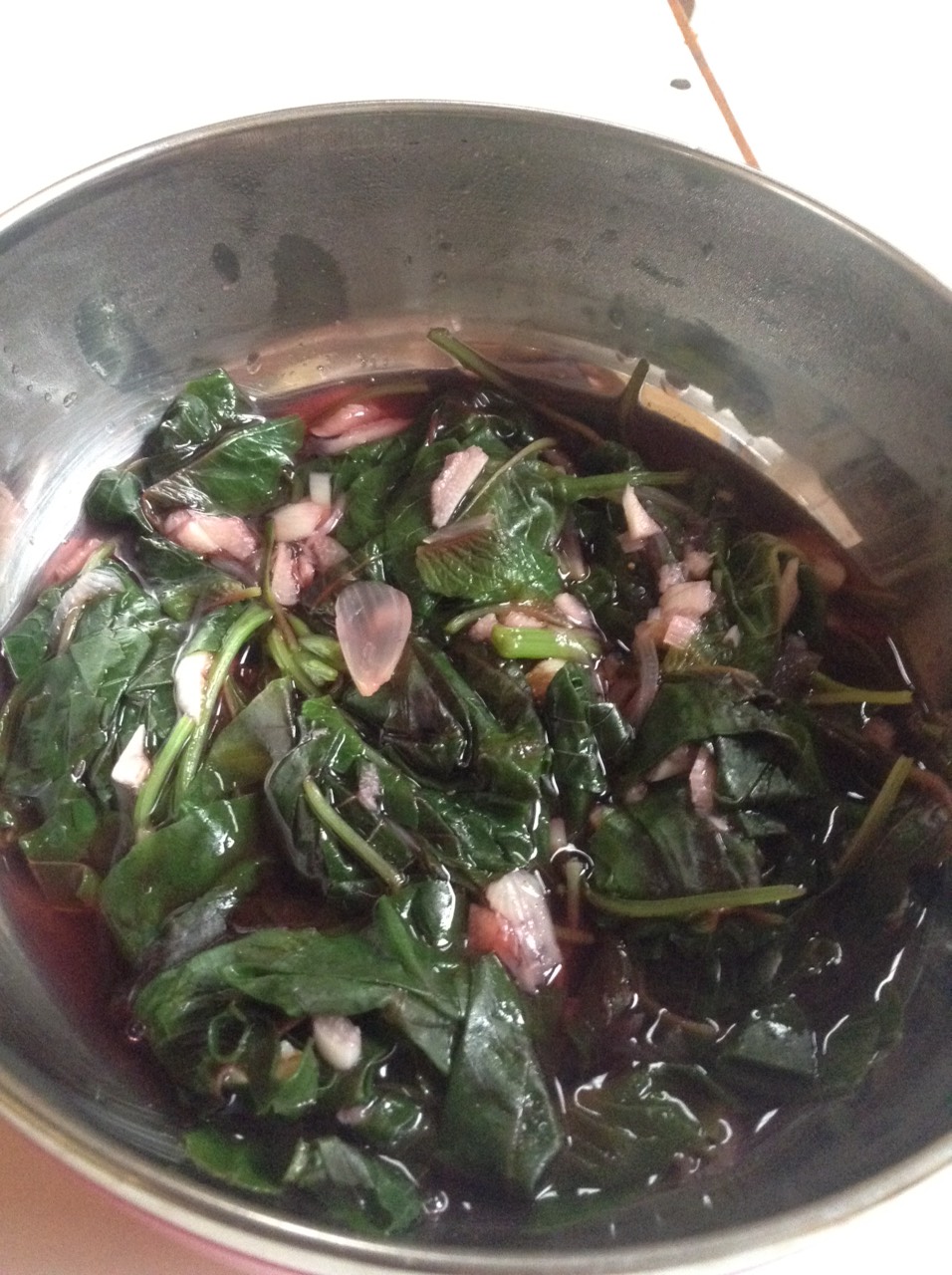 Karena bayam yang saya pakai ini jenis bayam merah/bayam